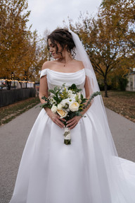 Pary looked absolutely stunning with an off-the-shoulder dress that was fitted through the waist, and then flowing out with the most beautiful veil.